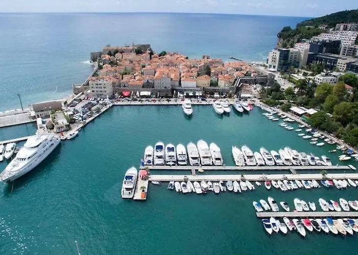 Altstadt Budva liegt ungefähr in 25 Gehminuten Entfernung und Strand von Bečići ist in circa 12 Minuten zu Fuß von diesem 4-Sterne Mediteran Hotel & Resort aus zu erreichen.